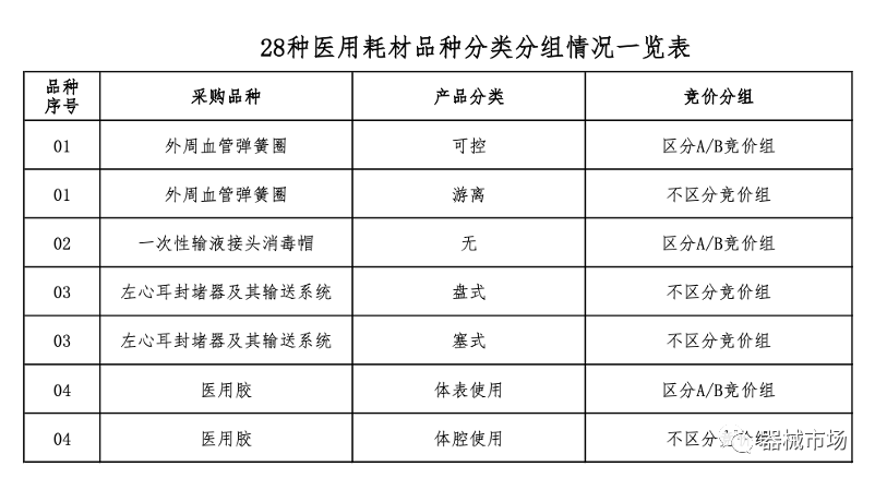 采购品种:包括外周血管弹簧圈、左心耳封堵器、医用胶、止血夹等28个品种。